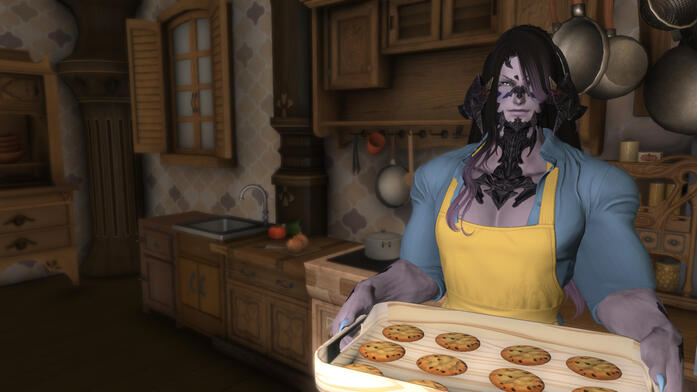 The cafe owner and operator, as well as baker, Lavanda Kha is an Au Ra of the Steppe who has come to Eorzea and found a new life and purpose here. A bleeding heart, Lavanda quickly found himself putting forth entirely too much of himself to help others.